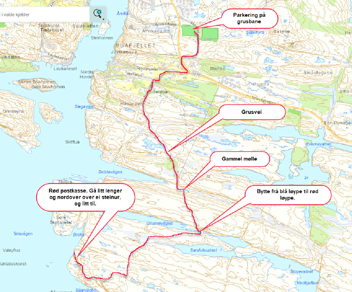 Det er sånn omtrent en timers spasertur frå grusbana i Telavåg, til Bekhilderen.