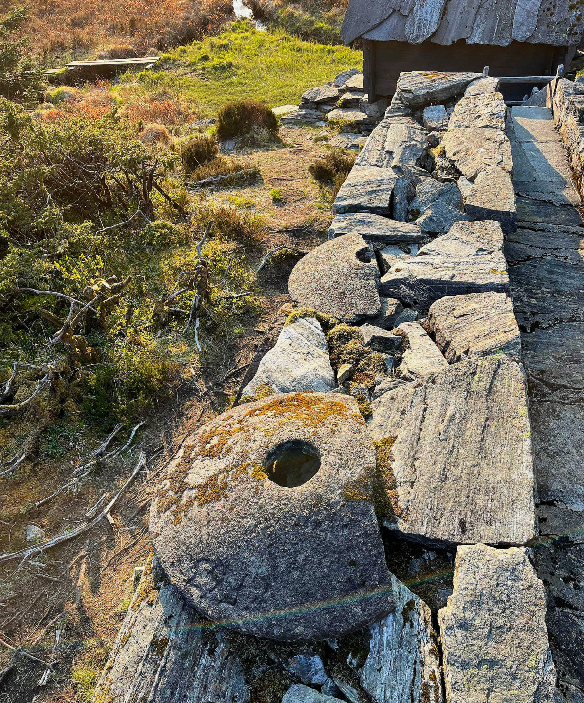 Kvernsteiner som har sett sine beste dager, ved kvernhuset.