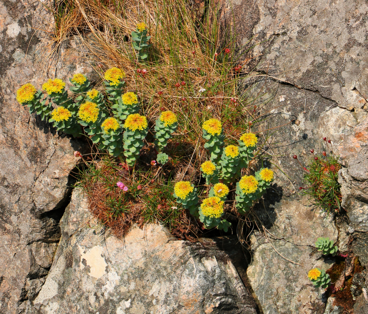 Nett som heime, så klorer blomster seg fast alle plasser dei har ein anledning til det.