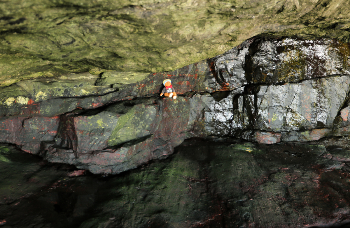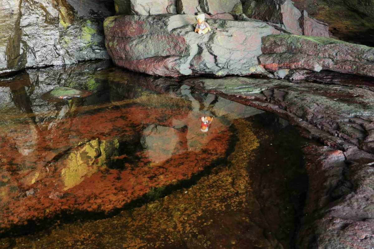 der sjøen er så klar at det er vanskelig å sjå kor berget slutter og sjøen begynner.