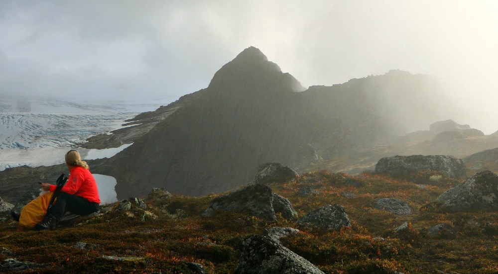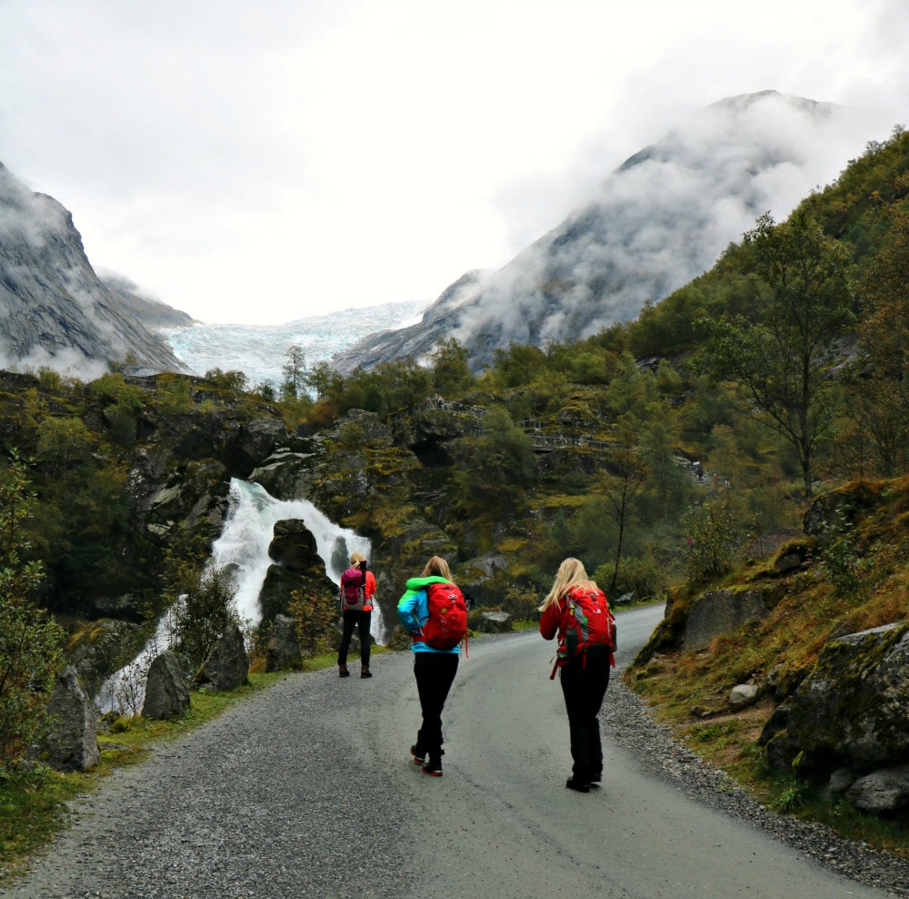 Eg er som vanlig forut for min tid, og står ved Briksdalsbre Fjellstove og venter på dei andre.