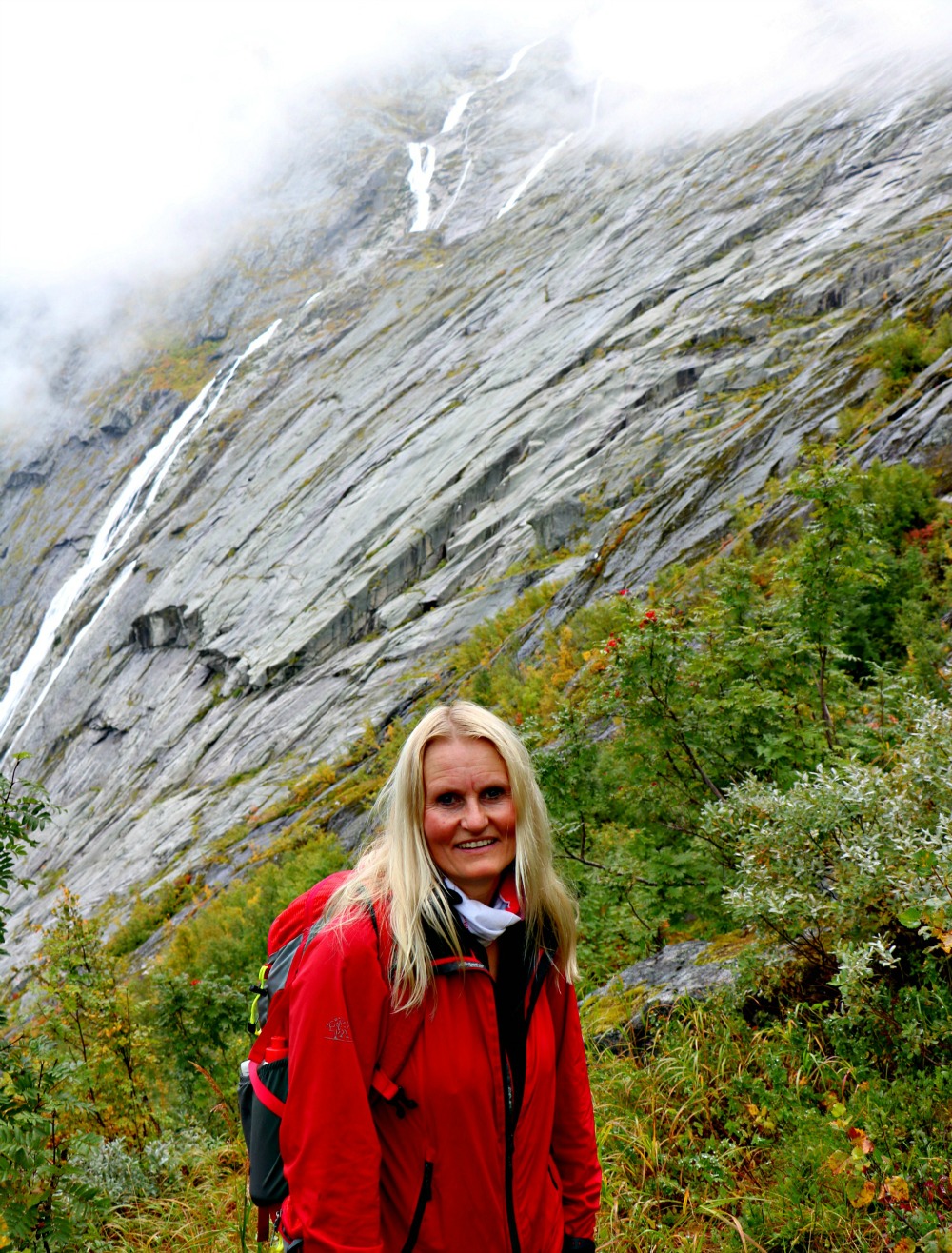 Mi gode venninne Wenche, rett før høgste toppen av Kattanakken.