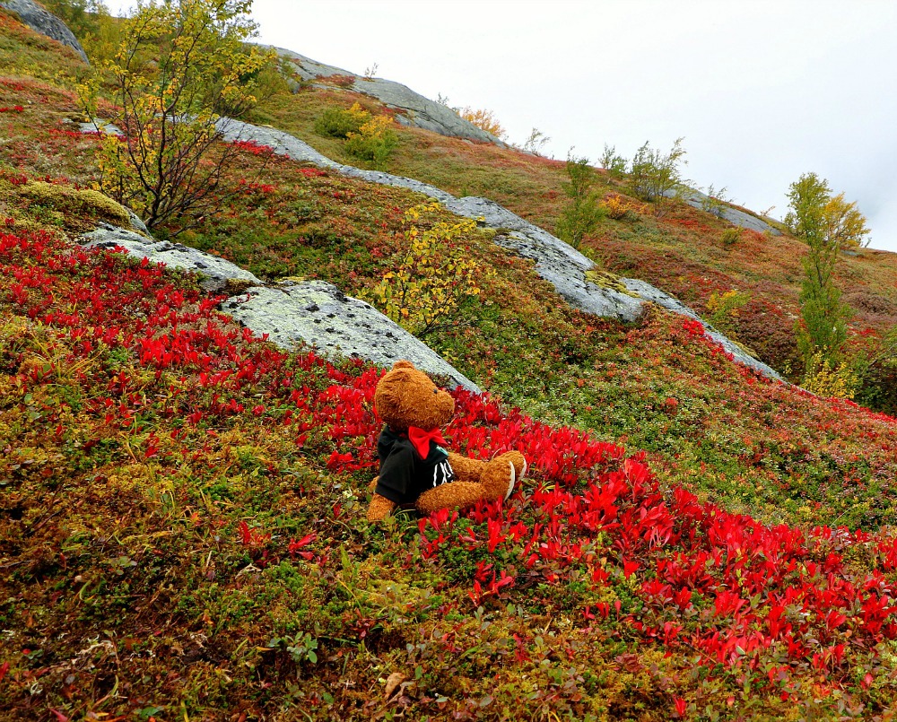 Vi har komme over tregrensa, og her er det helt nydelige høstfarger.