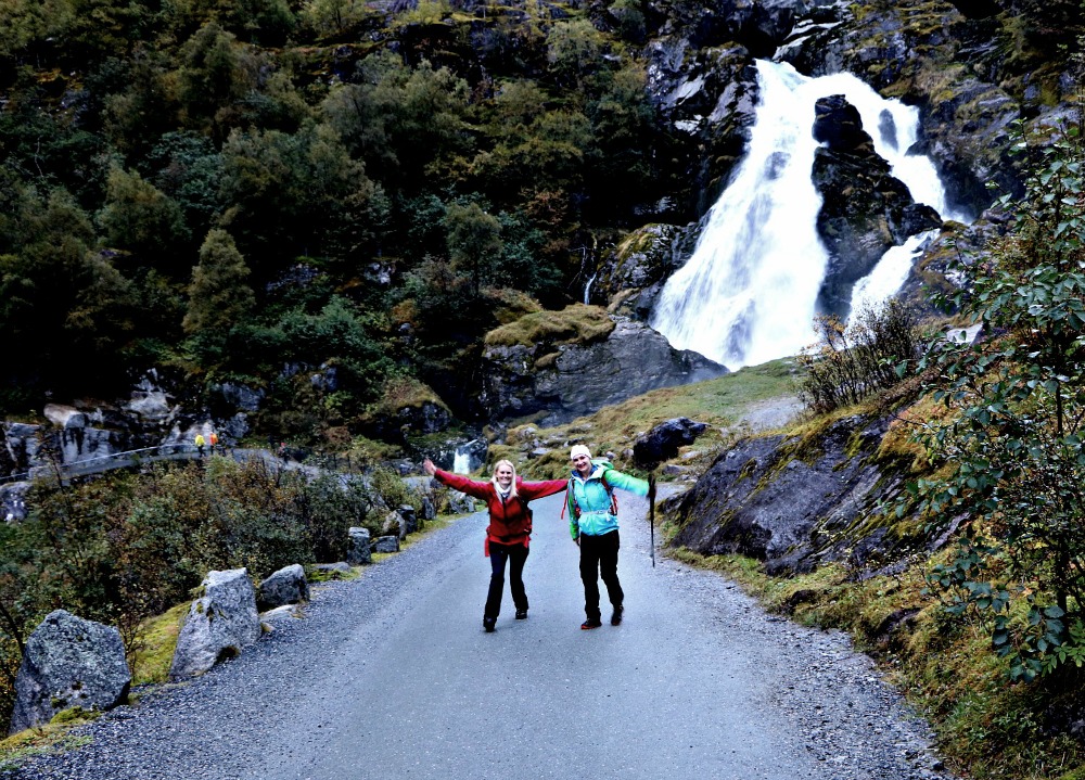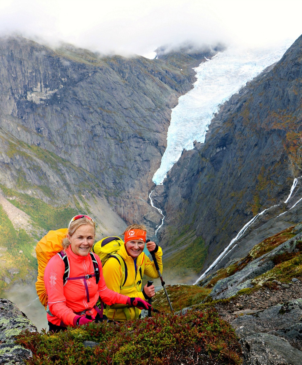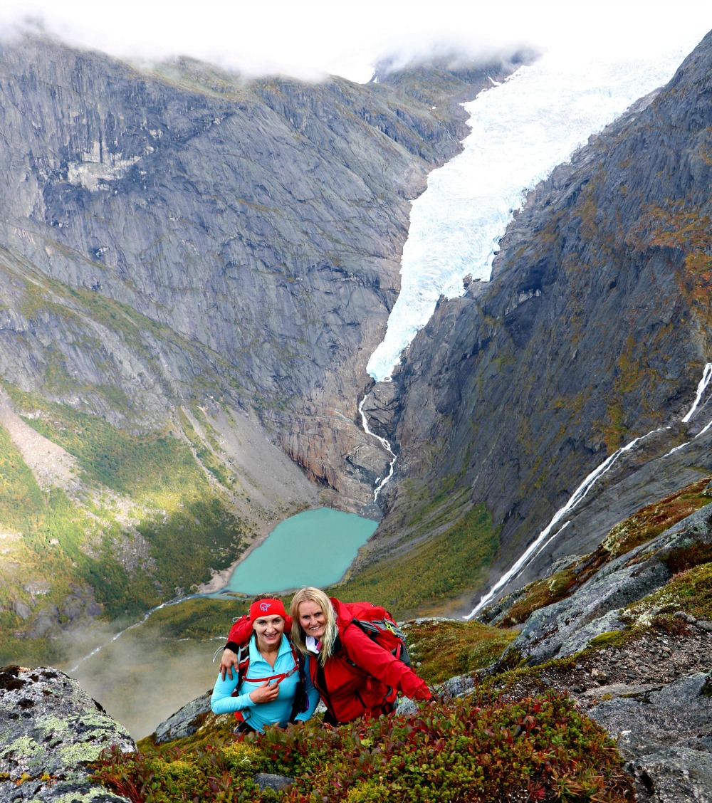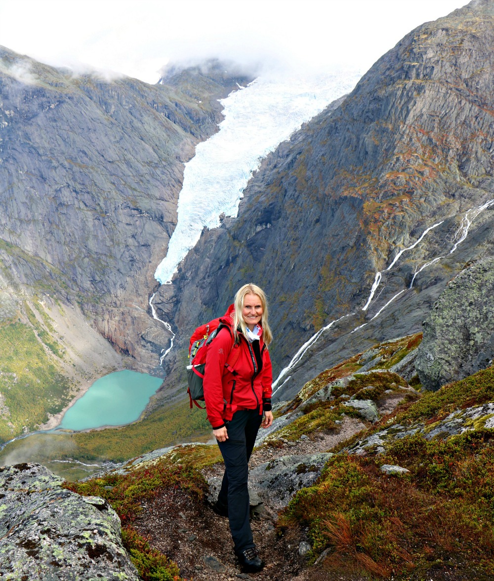 Mi gode venninne Lisbeth framfor Briksdalsbreen.