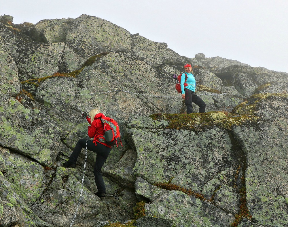 Jammen godt å ha en kjetting å halde i på dei brattaste plassane.