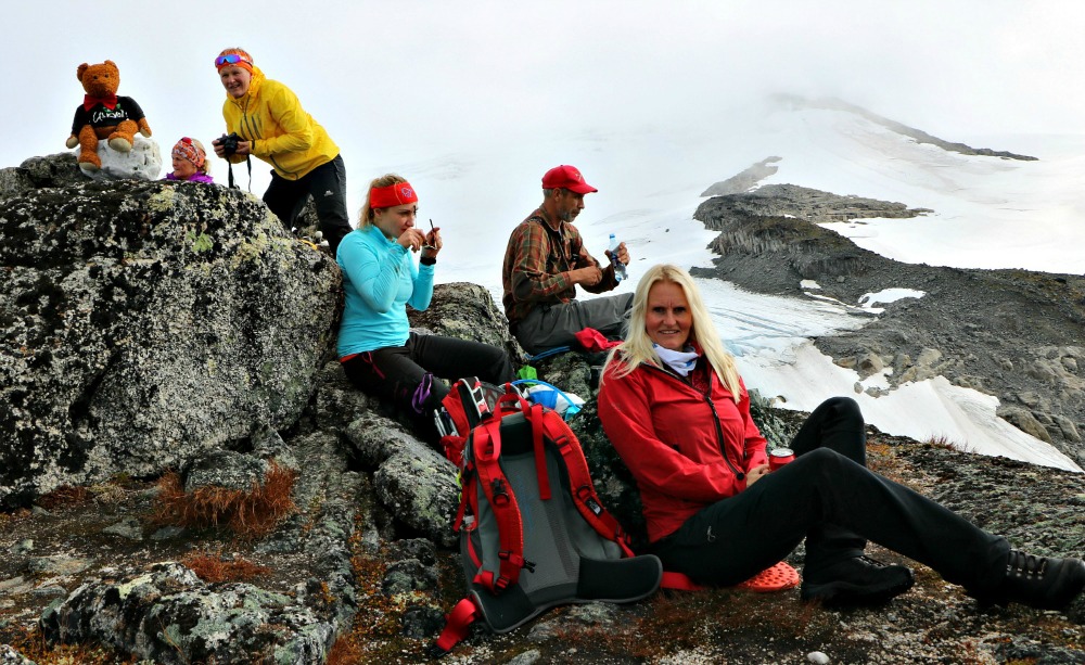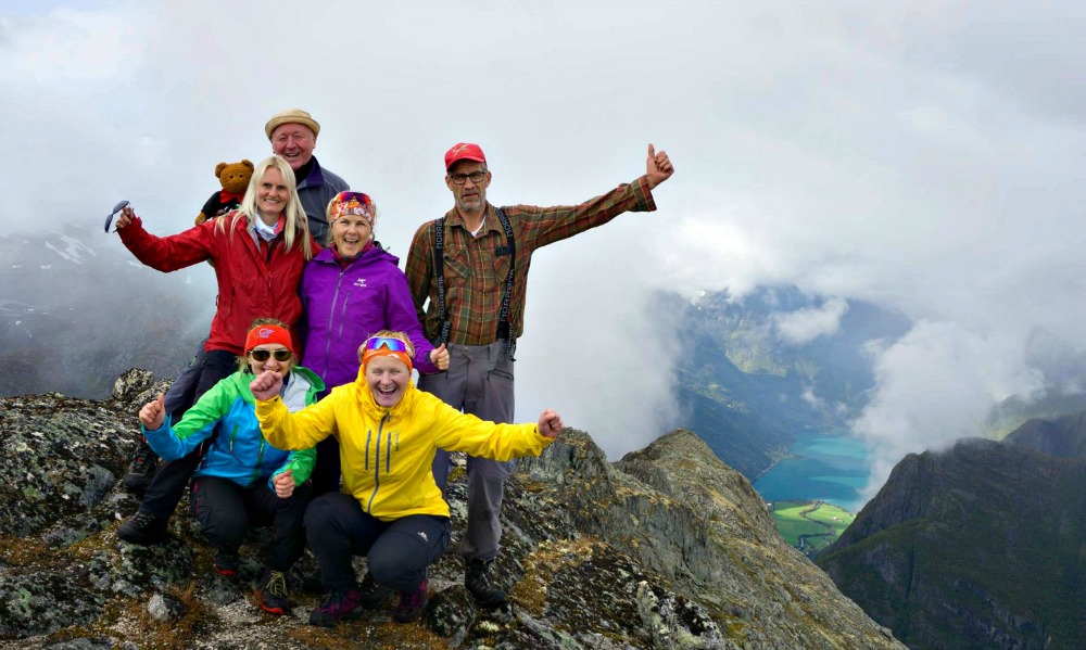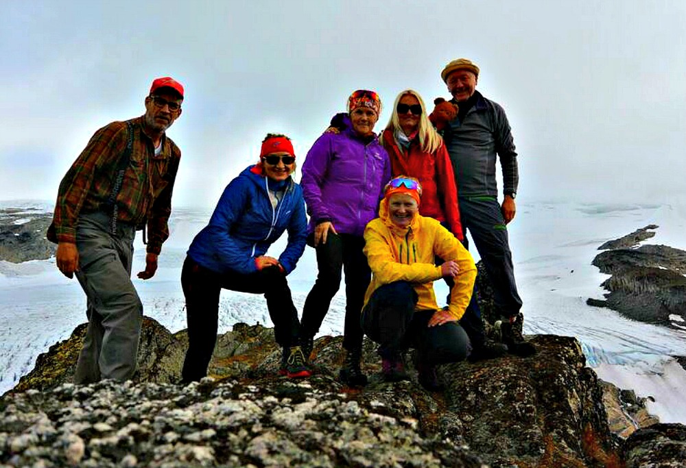 Turlederen vår, Guri Anne, er godt fornøgd med at heile gjengen kom seg til topps, og at vi var så heldig med været,