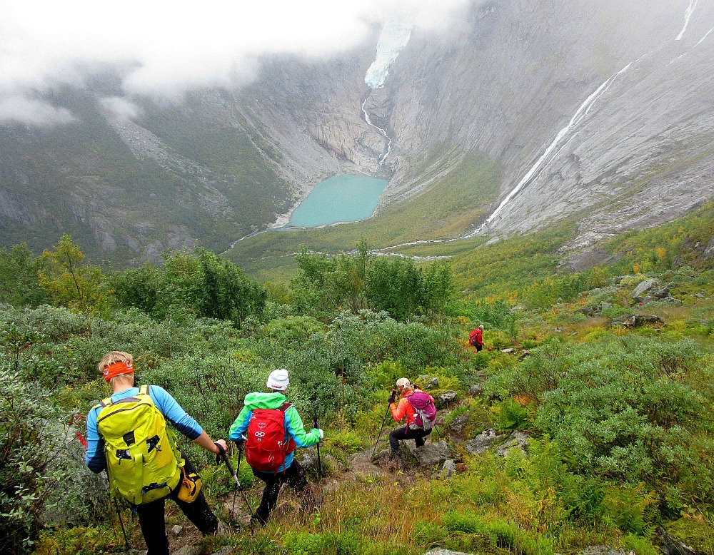 Her skal vi vandre oppover mot Briksdalsbreen ett stykke, før vi tek av mot Kattanakken.