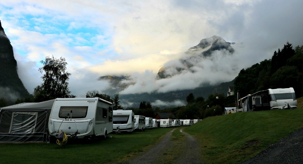 Så er eg framme ved en campingsplass ved Oldevatnet, der kompisen min Peter har leigd seg hytte.