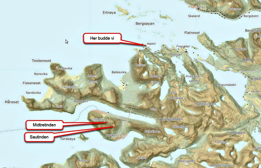 I dag besteig vi fjella Sautinden og Midtretinden i Torsken kommune.