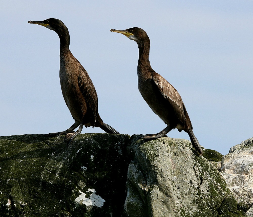 To toppskarver nyt ettermiddagssola på Sengskjæret ved Bulandet.