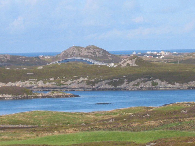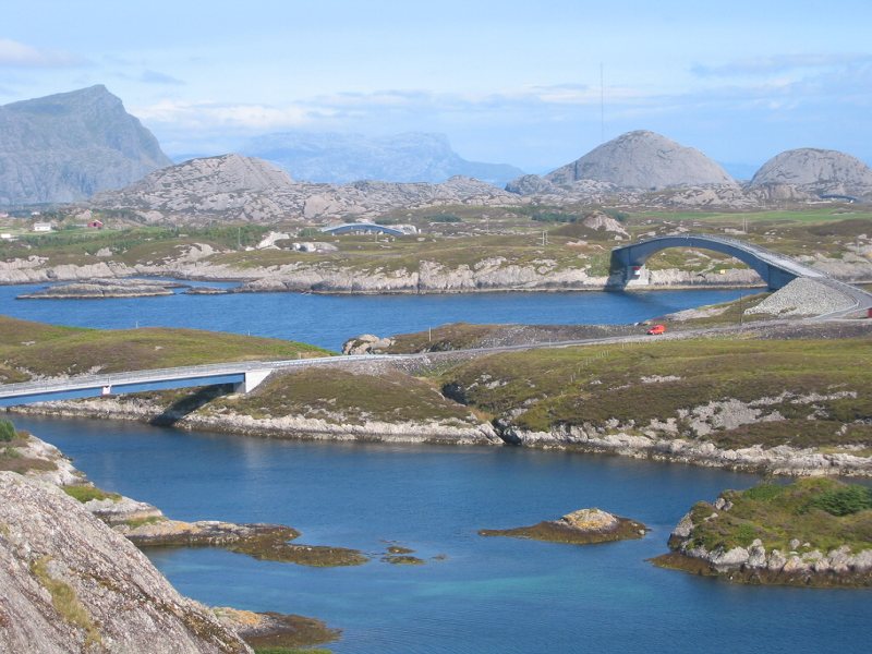 Her ser ein dei 4 største bruene, det er 2 til som er ute av syne. Ja og so ser ein postbilen som har vært på Værlandet å henta post. |