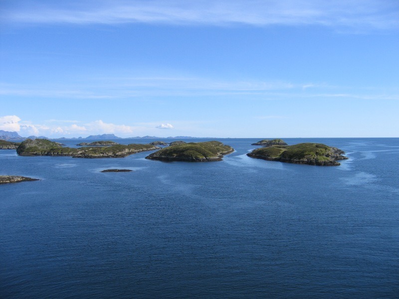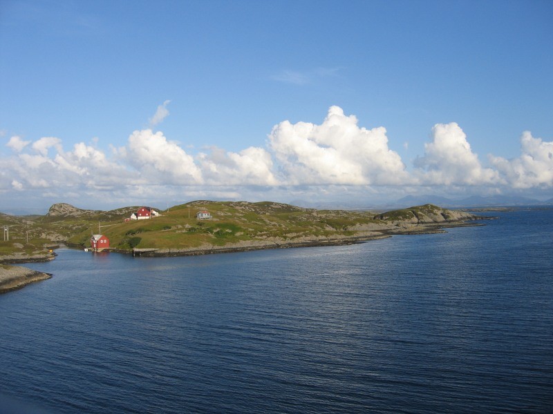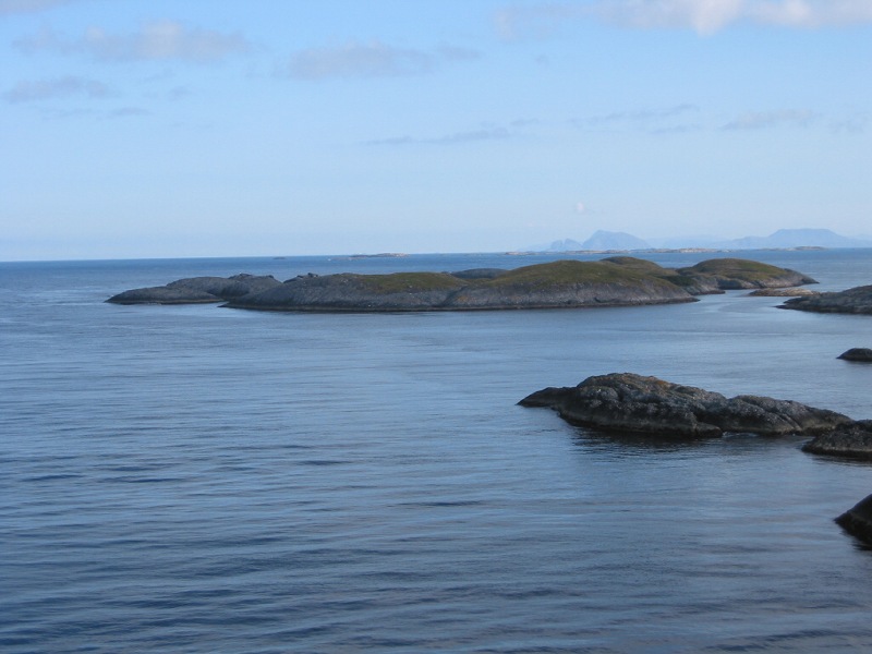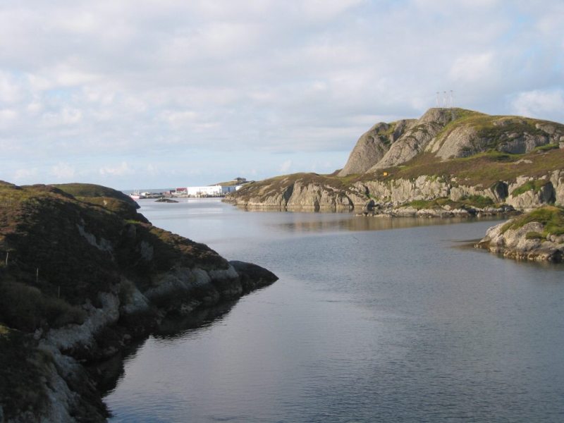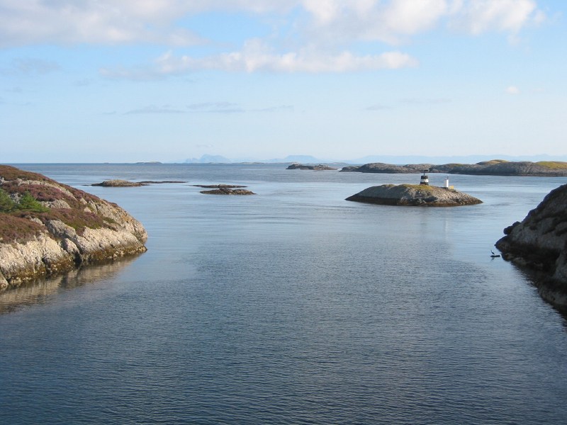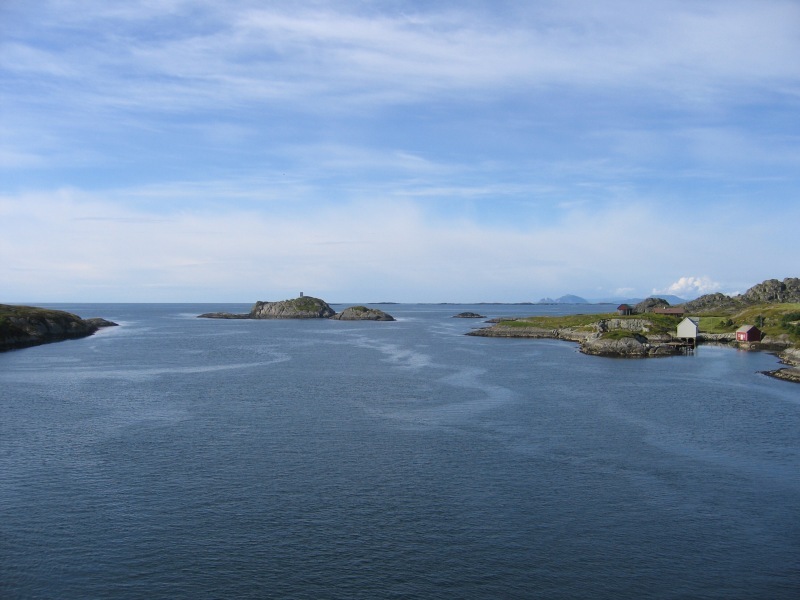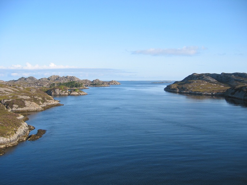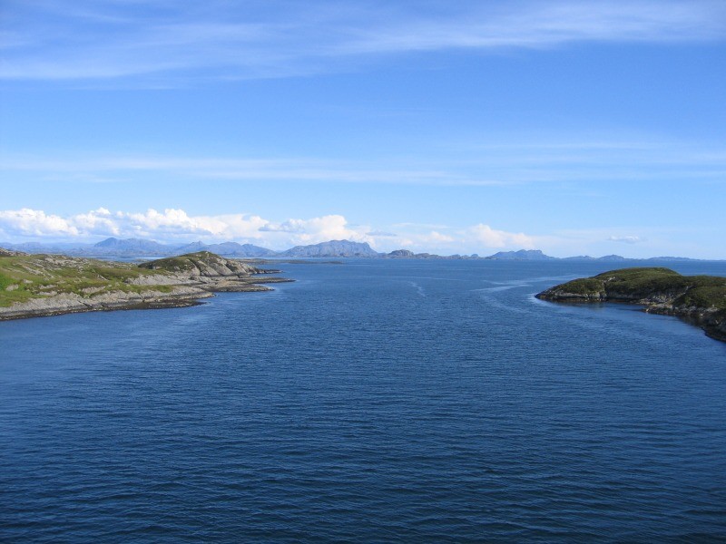 Utsikta sørover frå brua i Indre Melvær sundet. |