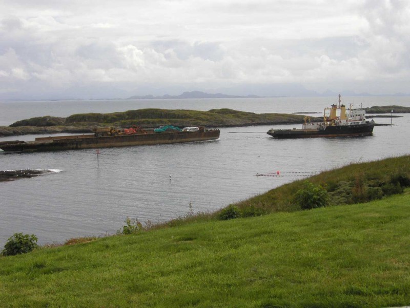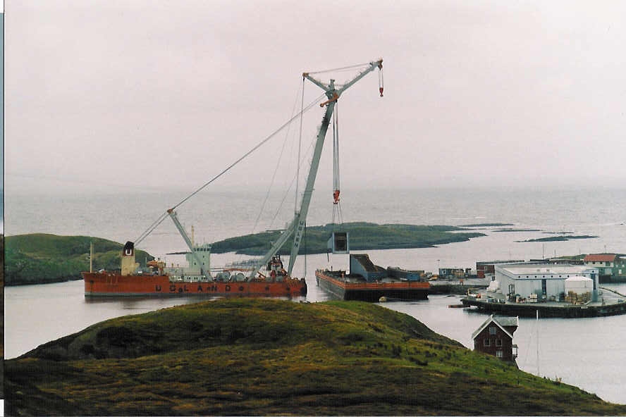 Her har kranskipet komt for å hente deler av bruene på kaia Foto av Eli Sandøy. |