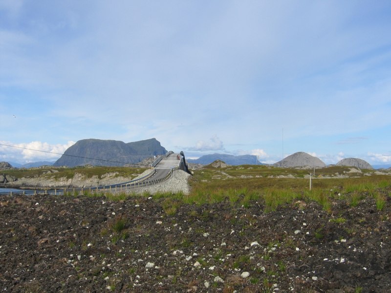 Brua over Olsundet, ser ut som ein sjøorm som snor seg i landskapet. |