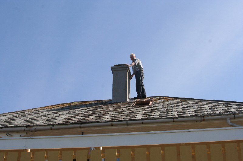 ![]() Her held Håvard på å gjere klar så den mannlege heimesideskrivaren kan komme seg opp på pipa. Heimesideskrivaren var noko skjelven i knærne når han stod oppå der, men Håvard kom med mange trøstens ord underveis så da gjekk fint. |