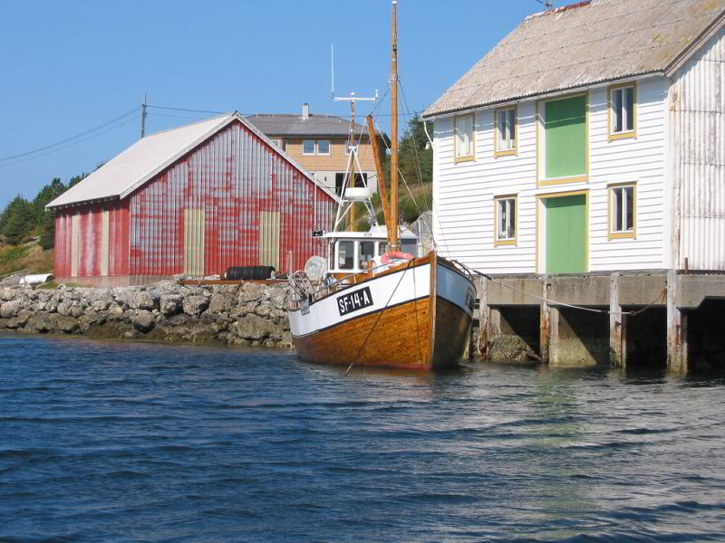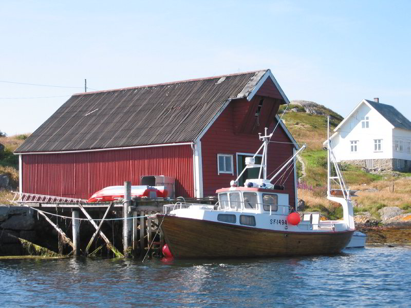Austsida av Halsøy vågen. Fiskebåten Fix. |
